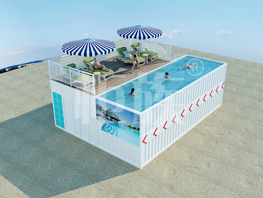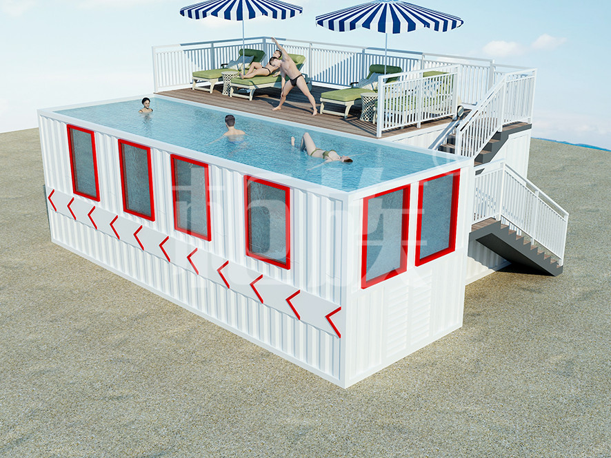 集裝箱泳池可以完全在工廠預制完成,占地小、造價低,適合庭院、海邊的度假地、以及其他公共游樂場所使用。