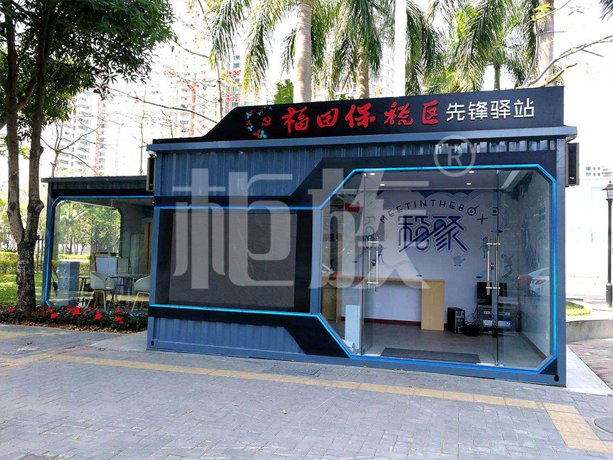 驛站使用兩個集裝箱錯位串聯(lián)而成,正面墻體使用大面積玻璃門窗,線條流暢、造型時尚、通透亮堂,很好的突出了驛站的標志性與開放性的特點。