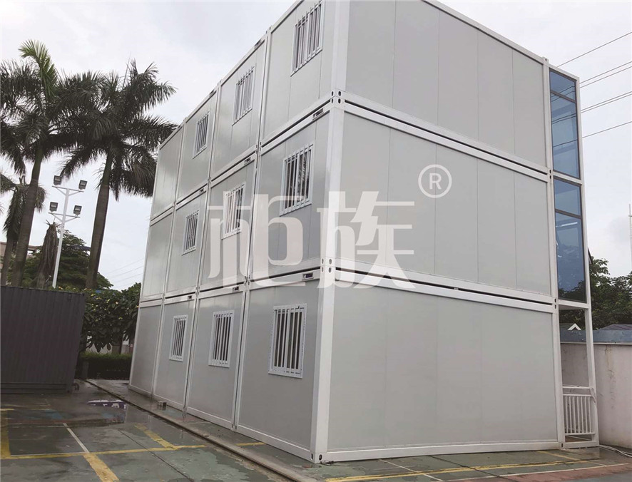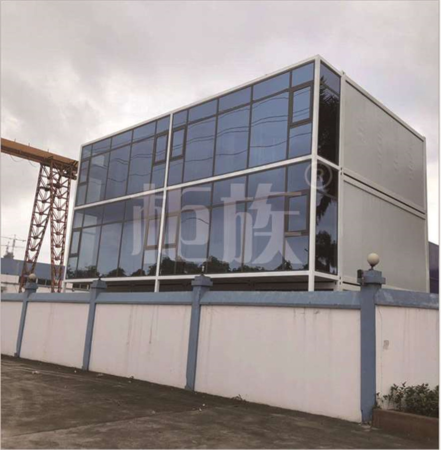 該打包箱辦公室上下三層,在設(shè)計上注重功能的實用性和選材用材的環(huán)保性??傮w約可容納50人的辦公和會議需求。