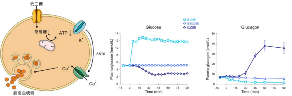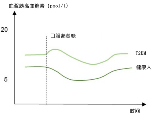 T2DM患者的胰高血糖素分泌調(diào)節(jié)功能受損,是導(dǎo)致糖尿病高血糖的重要原因。具體來說,T2DM的特點是空腹時胰高血糖素水平升高,而口服葡萄糖后胰高血糖素的抑制作用受損,甚至出現(xiàn)矛盾性升高。這通??山忉尀榈鸵葝u素血癥和α細(xì)胞的胰島素抵抗導(dǎo)致的胰島素對α細(xì)胞的抑制作用減弱。