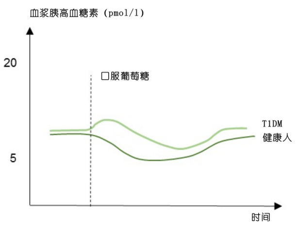 一般認(rèn)為T1DM患者高血糖的原因是選擇性丟失了大量的β細(xì)胞,導(dǎo)致胰島素分泌減少。然而,新出現(xiàn)的證據(jù)表明,胰高血糖素在T1DM病理生理學(xué)中扮演著重要角色。T1DM患者的胰高血糖素分泌障礙與兩種臨床表現(xiàn)有關(guān):餐后高胰高血糖素血癥和胰高血糖素對低血糖的反調(diào)節(jié)功能受損