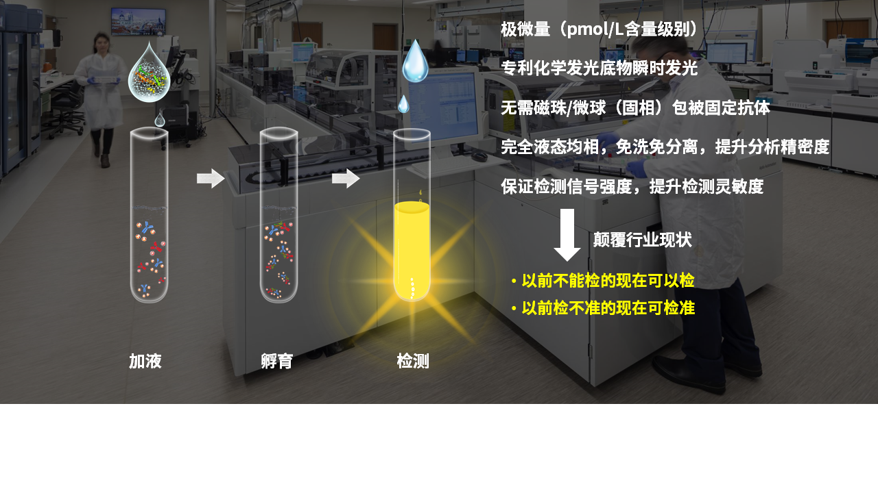全球首家用完全均相化學(xué)發(fā)光法檢測所有的糖尿病和冠心病相關(guān)指標(biāo),實現(xiàn)同一份標(biāo)本在同一臺儀器上一次性得到所有需要的檢測結(jié)果;無需包被固定和分離洗滌,具有快速精準(zhǔn),產(chǎn)生醫(yī)療廢液少,成本更低和經(jīng)濟環(huán)保等優(yōu)點。